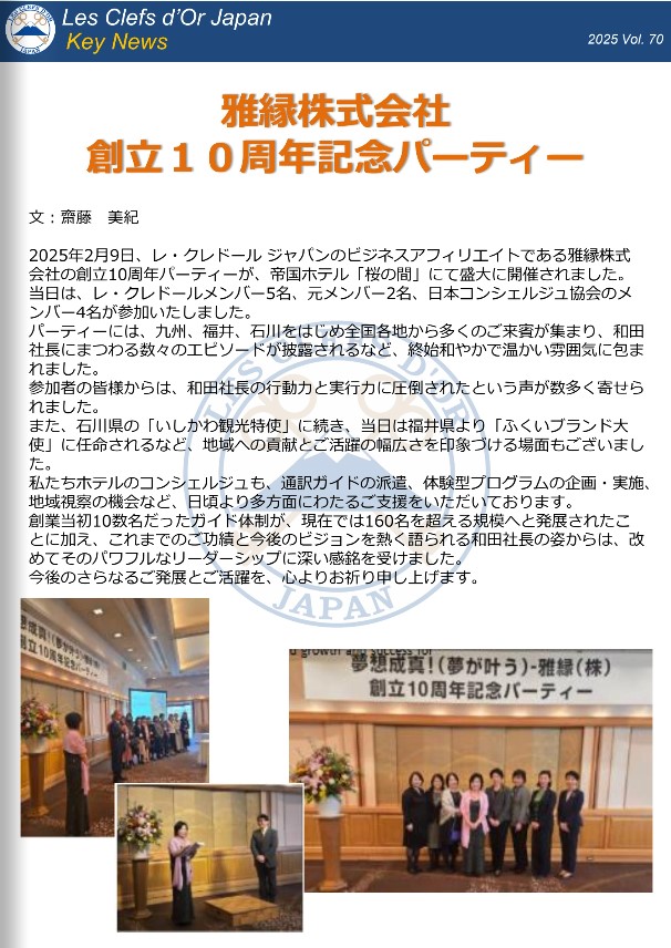 大変光栄にレ・クレドール ジャパン キーニュースに掲載されました。